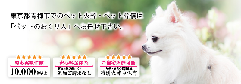 東京都青梅市内ご自宅またはご指定の場所に、弊社スタッフがお伺いし正式なお見積りを算出致します。※体重での料金区分は目安となります。(正確には「骨量・骨壷のサイズ」で料金を設定させていただいております。】プランの違いによる追加料金は一切ございません。